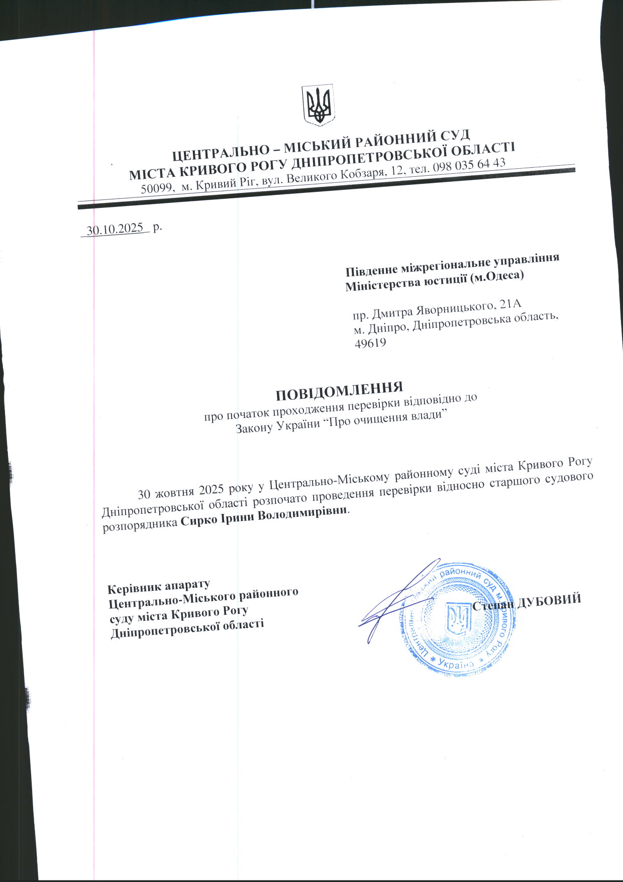 Повідомлення про початок проходження перевірки працівників апарату суду